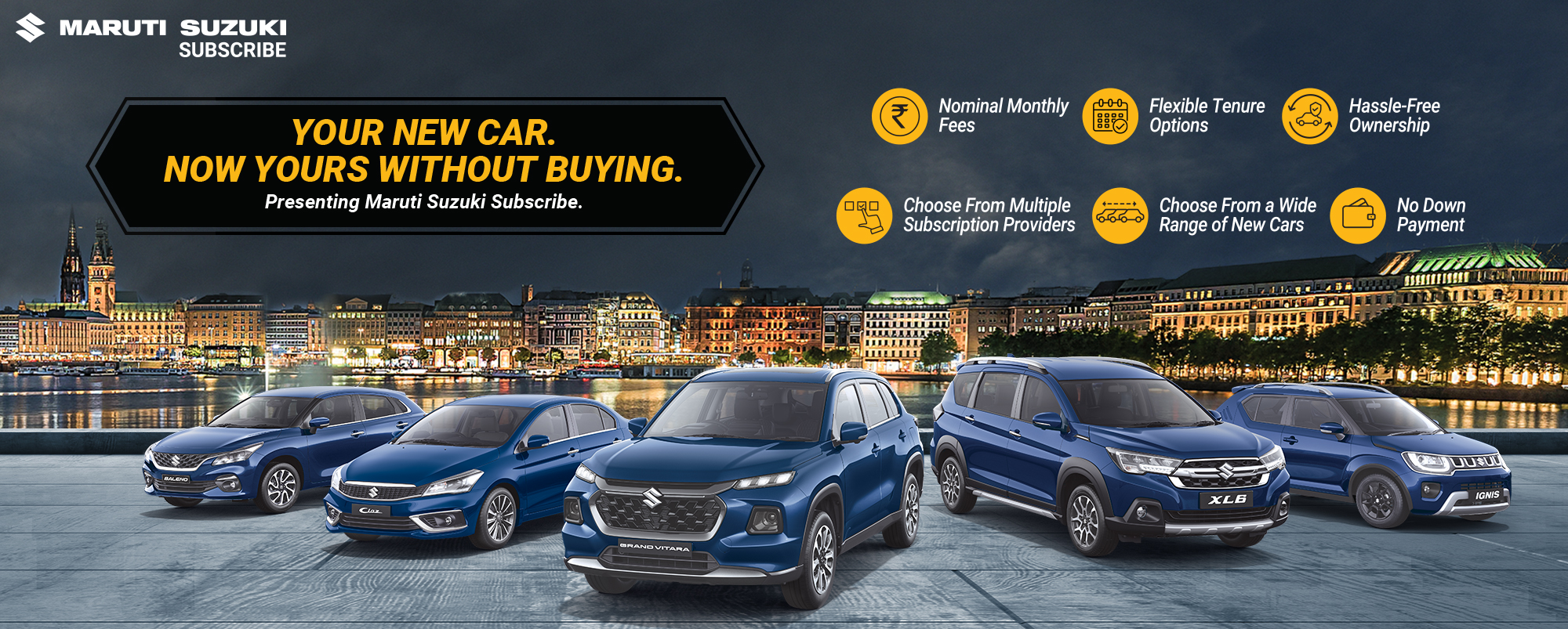 Located in Greater Noida, Rana Motors offers a plethora of options of Nexa cars for Maruti Suzuki Subscribe. You can choose your desired Maruti Suzuki car and drive it home at nominal monthly fees for a variety of flexible tenure periods. Whether you prefer Hatchback, Sedan, SUV or even MUV you are sure to find it at Rana Motors, Techzone-4 with an easy Maruti Suzuki Subscribe plan.